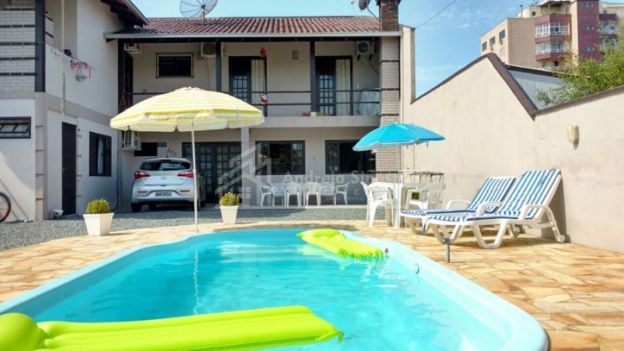 Sobrado parte térrea  em excelente localização, aprox. 350 metros do mar, contendo 01 quarto com ar condiionado sala de estar conjugada com cozinha, 02 banheiros, 02 quartos interligados com ar condicionado,  área de serviço, área de churrasqueira, piscina medindo  6 x 3 (profundidade 1.40), pátio para carro. O imóvel possuem água de poço e água tratada.