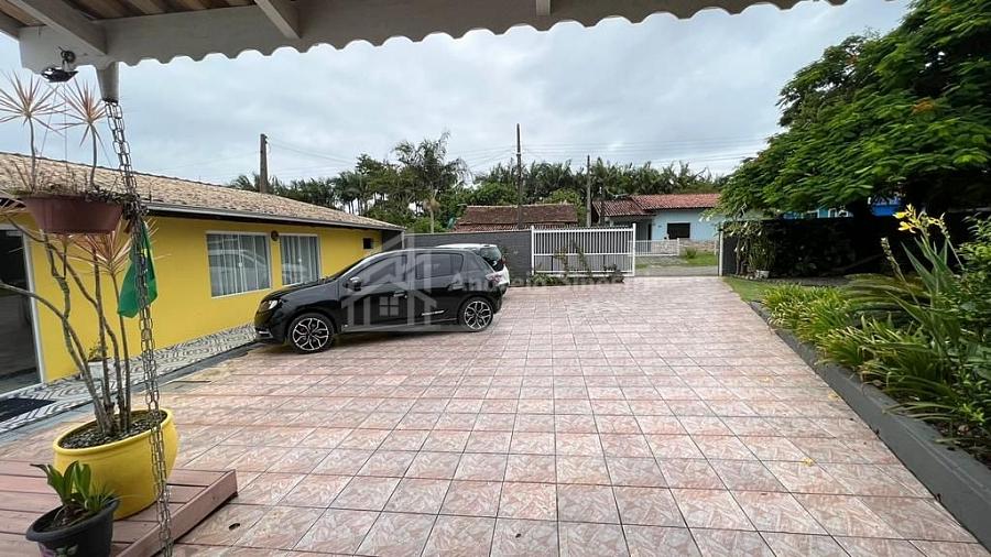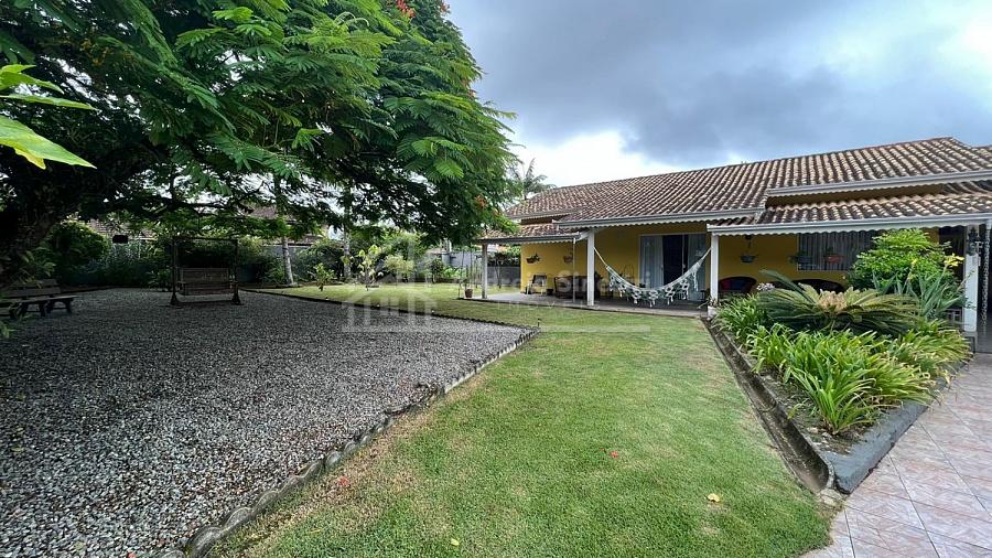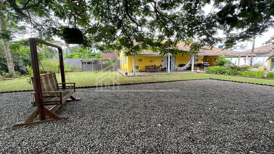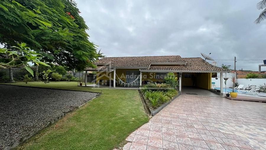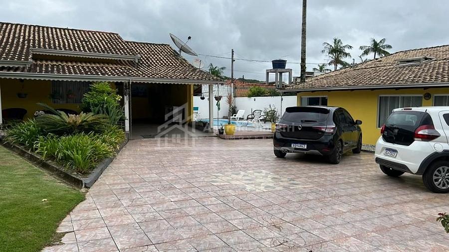 Está residência conta com um amplo espaço de terreno, contendo vagas de garagem para carros, jardim, área de piscina e lazer.