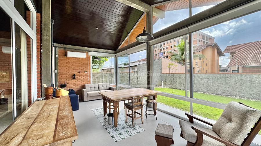 Nos fundos, o imóvel surpreende com um espaço gourmet incrível, equipado com cozinha e banheiro social completo, perfeito para confraternizações e momentos especiais. Complementando essa experiência, há ainda uma sala de descanso com paredes de vidro, proporcionando iluminação natural abundante e uma conexão única com o ambiente externo.